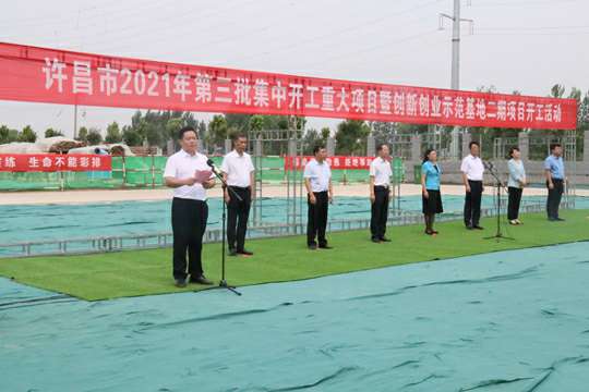 7月10日上午,河南省许昌市2021年第三批集中开工重大项目暨创新创业示范基地二期项目开工仪式顺利举行。许昌市委常委、纪委书记、监委主任方婷,魏都区委书记李朝锋,区人大常委会主任申健民,区政协主席杜晓辉,区委常委、区委办主任程中山,区委常委、区纪委书记、区监委主任徐光,魏都产业集聚区管委会主任楚文选,星空官方网页版-星空(中国)河南分公司总经理黄辰,魏都区政府相关部门、投资公司、产业集聚区、霸陵办事处等单位负责人参加活动。区委常委、常务副区长张挪威主持仪式。